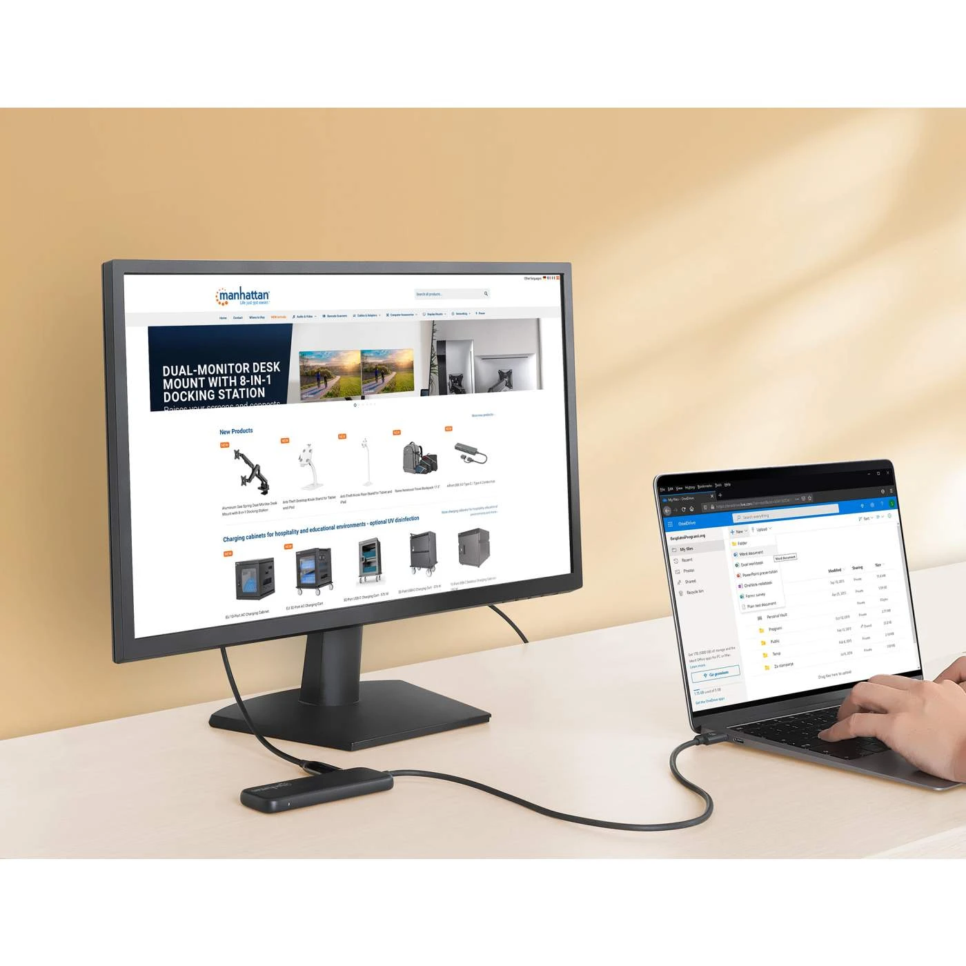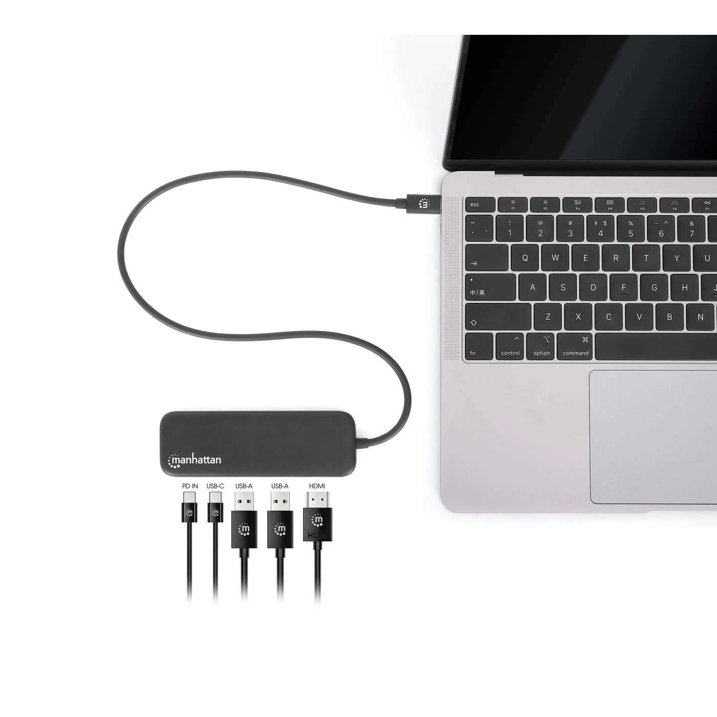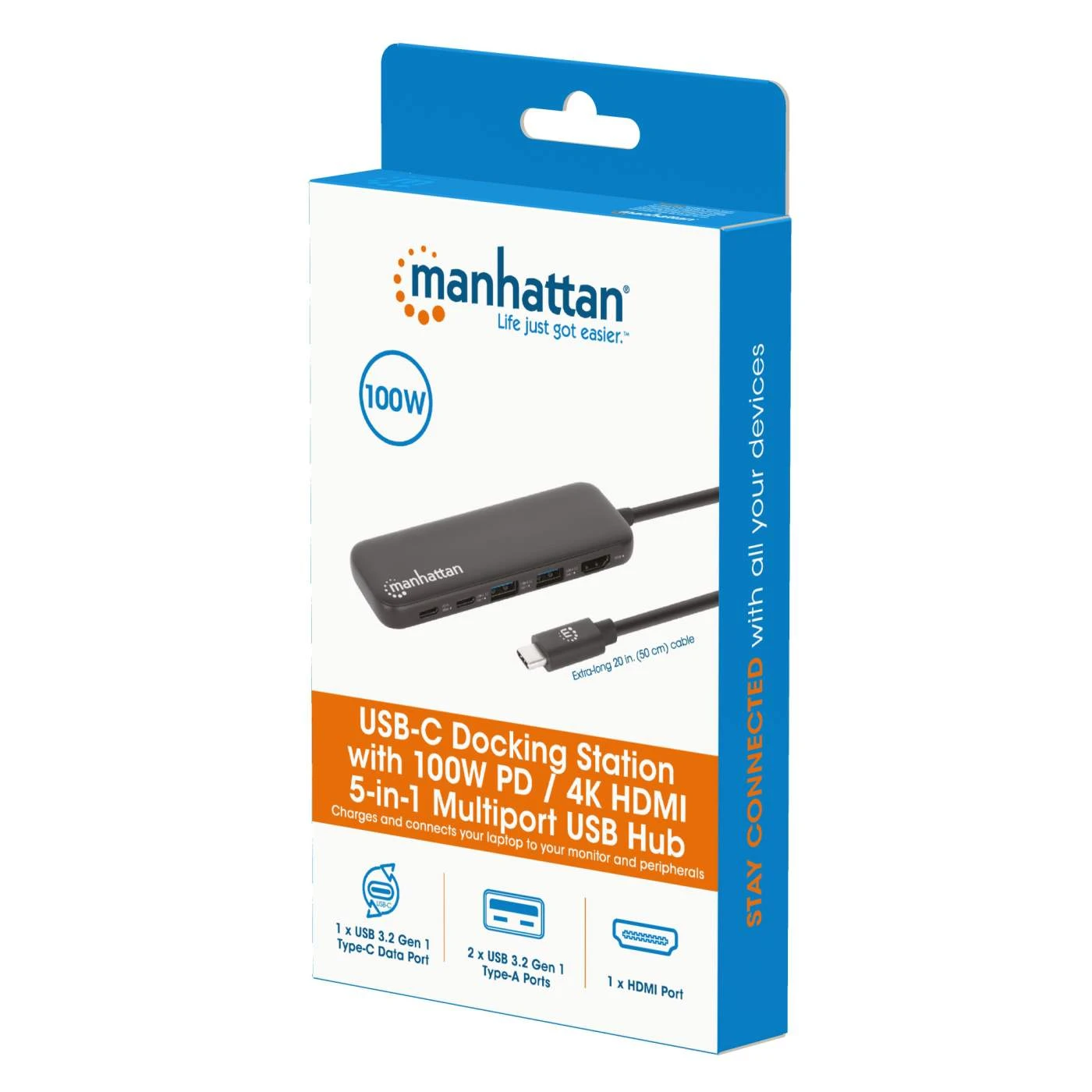 Increase your productivity with this versatile multiport adapter from Manhattan that combines a 4K HDMI connection and a USB hub into one. This USB-C dock establishes a fast, simple and convenient link between newer USB-C-equipped media sources (laptops, PCs, MacBooks, Chromebooks, computers, tablets, etc.) and existing HDMI displays (monitors, TVs and projectors) for 4K30Hz Ultra High Definition (UHD) images.