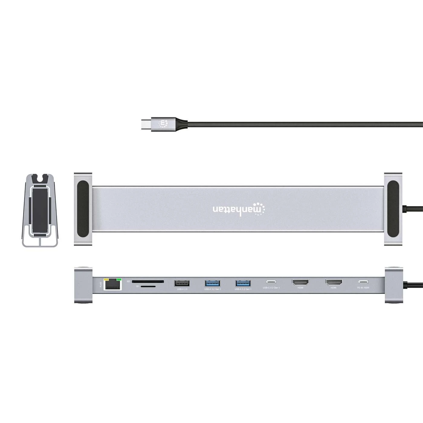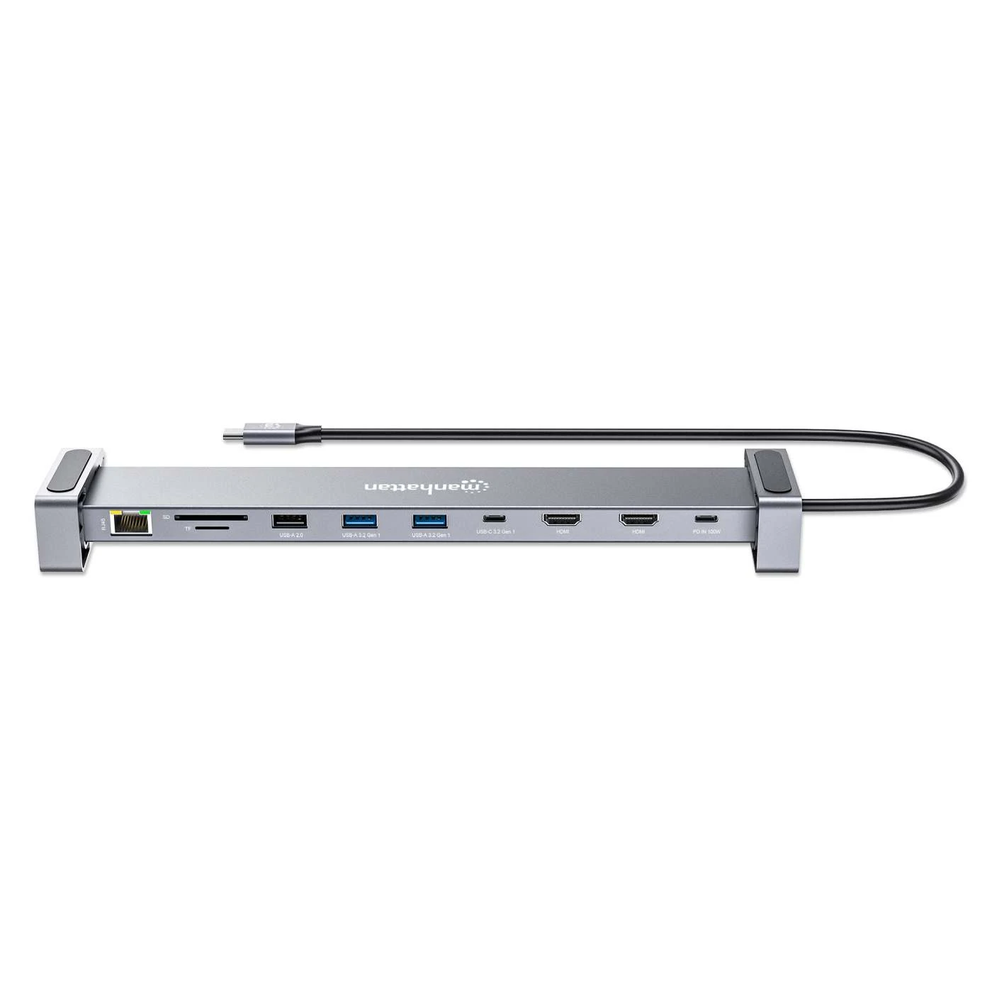 Elevate your device’s connectivity with the Manhattan 10-in-1 Multiport Adapter. This versatile docking station fills the gaps in your laptop or MacBook®, offering essential connections such as HDMI, Power Delivery, Ethernet, card reader, and USB ports.
